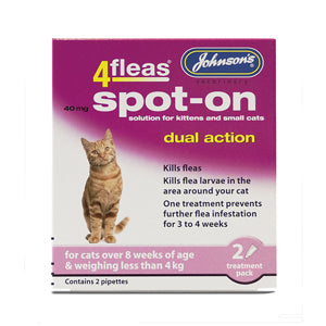Johnson's 4fleas Spot-On for Cats and Kittens is a fast acting Spot-On, suitable for pets over 8 weeks of age and weighing less than 4kg.