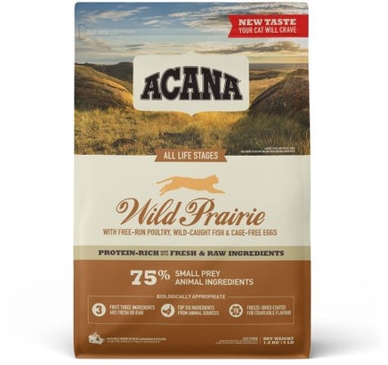 Cats biologically require a diet rich in protein from whole animal ingredients. Inspired by our vast prairies and pristine lakes, ACANA Wild Prairie offers your cat quality animal ingredients from free-run chicken and turkey, freshwater fish, and cage-free eggs. Protein-rich and nutrient-dense, ACANA includes WholePrey ratios of meat, organs, cartilage, and bone, so your cat is getting everything they need for peak health, keeping them happy, healthy, and strong.