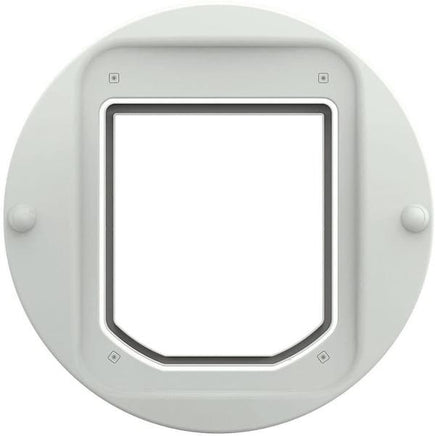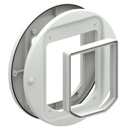 This paintable adapter kit enables easy installation into walls and glass panels for the following products: Cat Mate Microchip Cat Flap (Ref. 360), Cat Mate Timer Control Cat Flap (Ref. 359) and Cat Mate Rotary 4 Way Locking Cat Flap (Ref. 358). For glass installation, you will need a glazier to cut a 263mm (10 3/8") diameter hole in the panel. For wall installation, the Cat Mate Elite Wall Liner (Ref. 308) will be required (available separately). NOTE: For installation into existing double/triple glazing or toughened glass, a new panel will be required. Kit contains: 2 x adapter plates; 1 x tunnel adapter; 1 x adapter seal; 4 x screw hole covers; 4 x screw hole inserts.