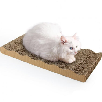 This corrugated cat scratcher gives your cat a comfortable place to scratch. Corrugated refill panels extend the life of the product and helps distract your cat from scratching your furniture.