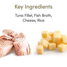 Tuna Fillet 70%, Fish Broth, Cheese 6%, Rice.