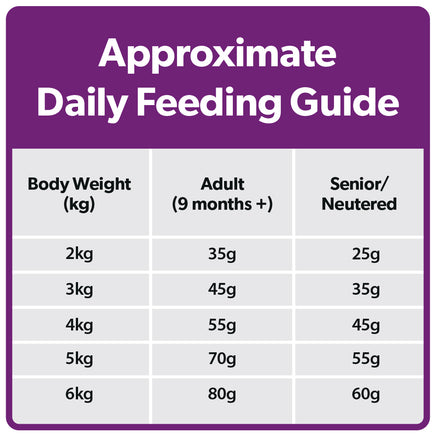 Daily feeding guide (approximate per day):