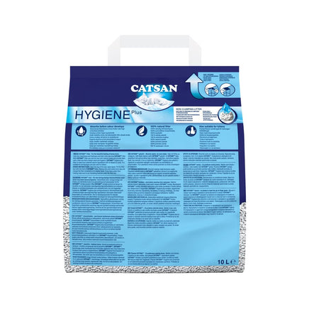 Catsan Hygienes extra mineral protection offers an especially reliable and long-lasting odour prevention, making this quality cat litter very popular with cats and cat owners alike. Catsan Hygiene is made from 100% natural raw materials (quartz and lime stone) giving it the hygienic white colour without any bleach. Catsan cat litter does not contain any artificial additives and is free from all dangerous fibres and other unsuitable substances, making it suitable for adult cats and kittens. Catsan Hygiene cat litter in a 10L Pack.The unique mineral protection of each granule of hygienic cat litter ensures reliable, lasting odour control without added fragrances, giving Catsan Hygiene Plus its high efficiency and durability