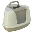 Easy carry handle Translucent door for added privacy The flip door will make daily cleaning an easier job Easy to clean with soapy water With scoop and charcoal filter Activated charcoal filter helps to reduce odours Made of high quality, BPA-free, non-toxic plastic for long-lasting use Two solid latching locks that keep the litter box secure Form: angular Dimensions: 55.7x45.1x38.2 cm Colour white/grey