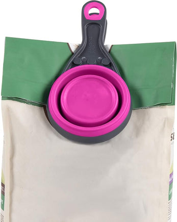 - This Klipscoop has a 1/2 capacity with a clip on the handle that fits neatly on a cat or dog food bag. Use the clip to seal your pet food bag until next use
