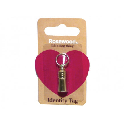 Sturdy and discreet pet ID tube which attaches to the collar and has a screw fastening top to base, allowing ID details to be contained inside.