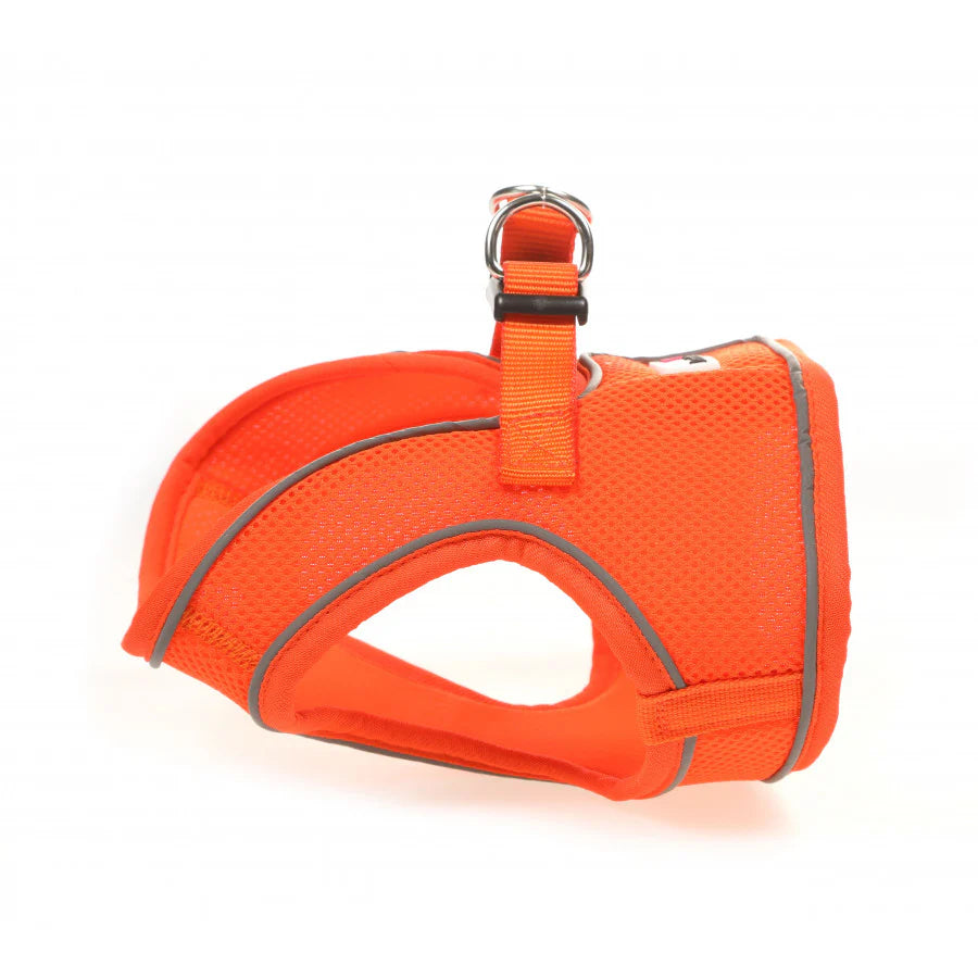 Our Snappy is constructed with soft mesh fabric that is breathable and a little bit stretchy. The harness gives a body-hugging fit with added chest coverage to avoid adding pressure to a particular part of the dogs body.