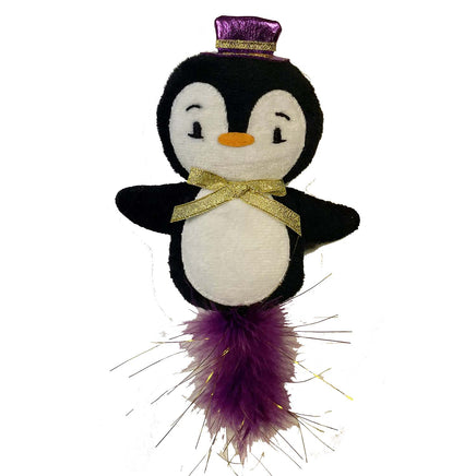 The Happy Pet Gemstone Forest Penguin Kicker 22 x 10 x 2.5 cm is a cat toy in a Christmas atmosphere, the ideal gift for all cat lovers! This cute plush pinquin is made of wonderfully soft plush. Its shape and long tail make it perfect for grabbing and kicking, as cats like to do. The tail is decorated with golden accents, just like the cute bow and hat of the penguin, for extra Christmas feeling.