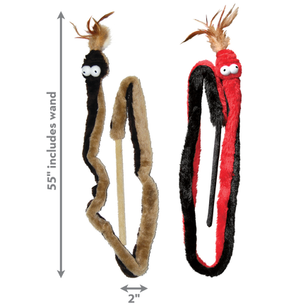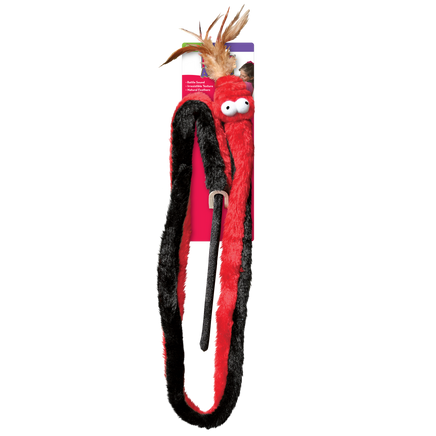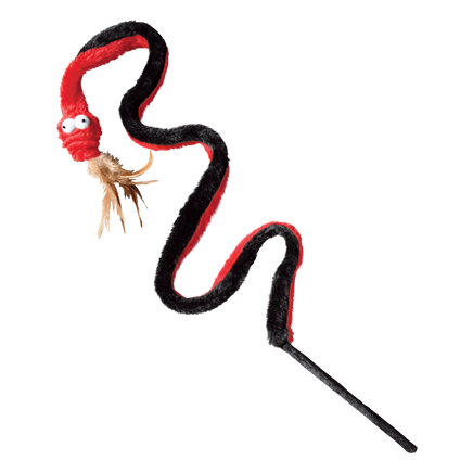 The KONG Snake Teaser is perfect for fun, interactive play. Irresistible feathers and unpredictable movement will stimulate your cat friend’s natural hunting instincts and provide beneficial exercise. The Snake Teaser is sure to bring out the playful tiger in any cat. Durable and safe, this item is for supervised play only.