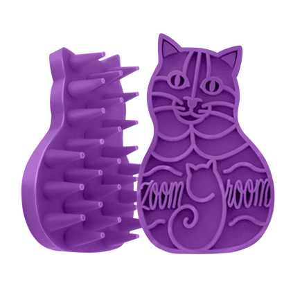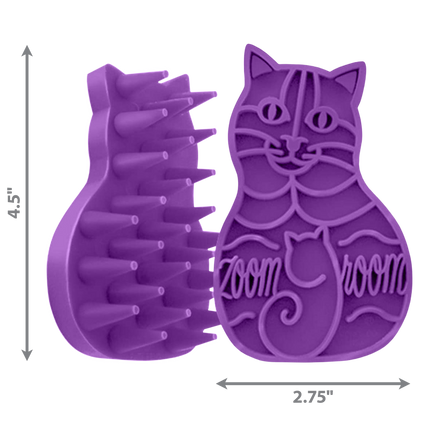 The KONG ZoomGroom® for Cats massages and grooms at the same time. The soft, rubber fingers are a magnet for loose hairs. Helps condition skin and reduce hairball formation. The gentle massage action calms cats, especially in potentially traumatic situations such as veterinarian visits.