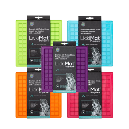For fun pet interaction, three designs are available. Lickimat Playdate, with its box design, is perfect for mushy bits of meat or fish, yogurt, peanut butter and chunky treats and foods.