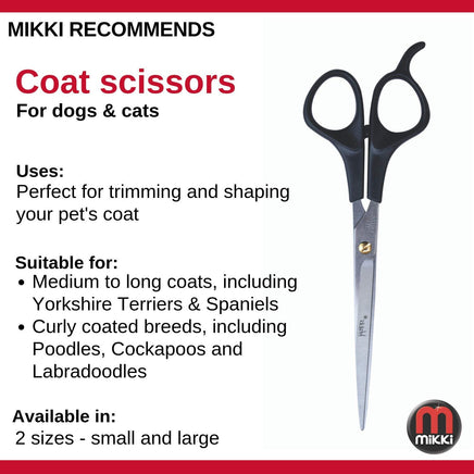 Mikki Coat Scissors have extra strong, heat treated blades with micro-serrated edges to make them long lasting and precise.