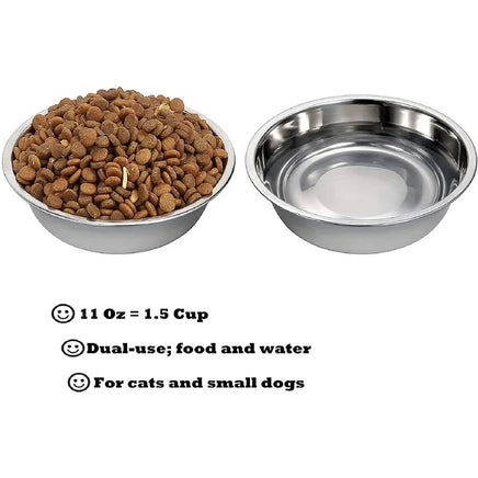 Stainless steel bowl is designed for spaniels and other dogs with long, floppy ears so that the ears hang over the edge of the bowl instead of in the bowl. Hygienic and easy to clean. A sturdy stainless steel tapered bowl ideal for your cat or dog. 11 inch diameter.