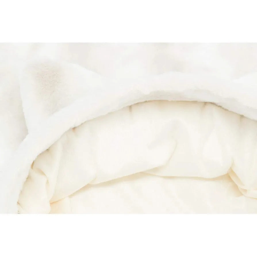 Nelli cosy bag. Dimensions: 34 x 23 x 55 cm. Colour: white/taupe. Made of plush/short plush hair. Polyester cover. Polyester fibre filling. Stable shape thanks to reinforced edges.