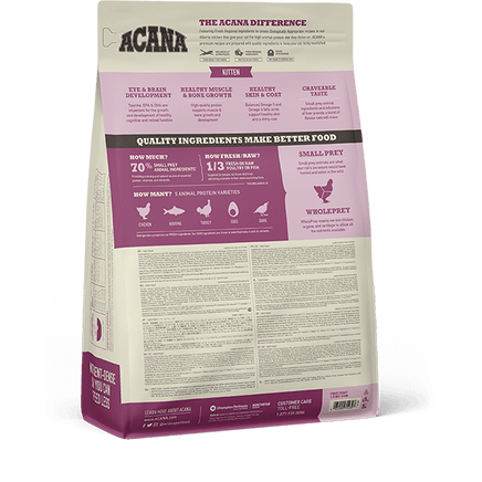 Jumpstart your kitten’s life with a food packed with whole animal ingredients. Crafted to provide everything your kitten needs for peak growth and development, ACANA First Feast is brimming with free-run chicken and whole herring in WholePrey ratios of meat, organs, cartilage, and bone, providing your kitten with everything they need in order to grow up healthy, happy, and strong, with a delicious flavour that they’ll love.