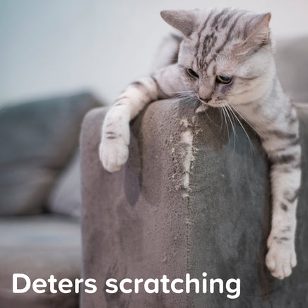 Training aid for cats and dogs. The spray contains citronella, a substance that cats and dogs find unpleasant, leaving pets discouraged from scratching or chewing anything that is sprayed. Suitable for use on hard and soft furnishings.