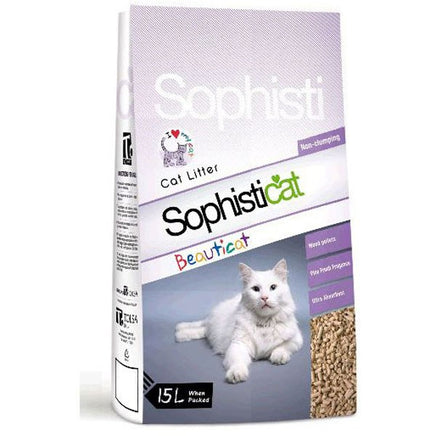 Beauticat is an organic woodbased cat litter and is made from 100% recovered sawdust which retains its natural pine fresh scent. As well as being biodegradable Beauticat is up to 5 times more absorbent than some other traditional cat litters.