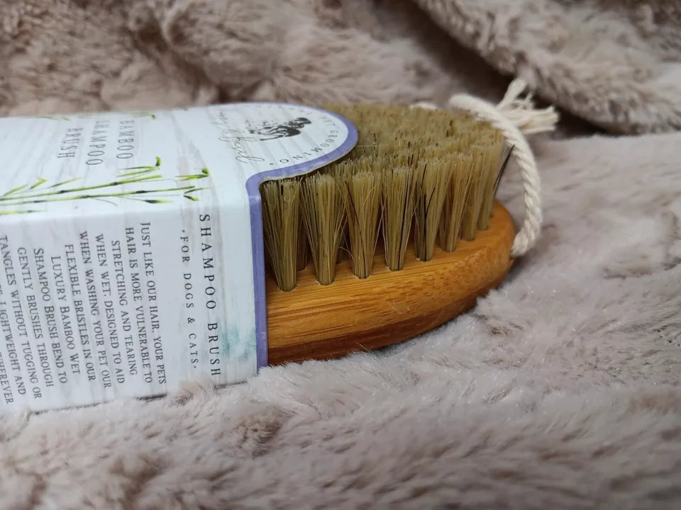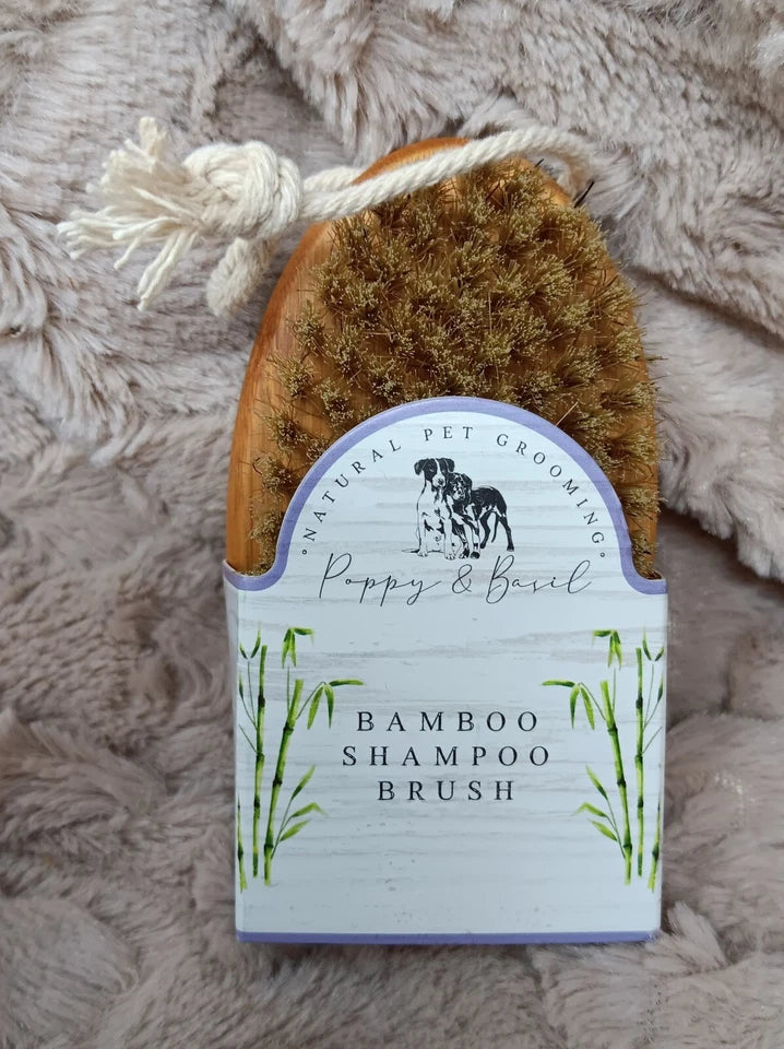 A high-quality product at a fantastic price that can't be beat, this dog brush from Poppy & Basil is essential for keeping your dog's fur groomed and tidy.It's made from an eco-friendly and sustainable bamboo material and comes in a stylish natural colour schemeJust like our hair, your pets hair is more vulnerable to stretching and tearing when wet; designed to aid when washing your pet, the flexible bristles in this Luxury Bamboo Wet Shampoo Brush bend to gently get through tangles without tugging or distress. It's Lightweight and ergonomic for use wherever you bathe your pet! Handle is crafted from eco-friendly bamboo, our fastest growing renewable source on the planet.