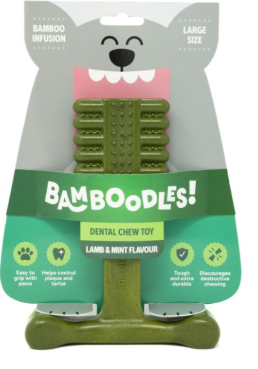 Our Bamboodles ‘T-Bone’ is tough. The natural strength of bamboo fibre combines with nylon fibres to create a longer-lasting, durable chew toy - suitable for all dogs, including those more aggressive chewers.