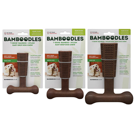Our Bamboodles ‘T-Bone’ is tough. The natural strength of bamboo fibre combines with nylon fibres to create a longer-lasting, durable chew toy - suitable for all dogs, including those more aggressive chewers.