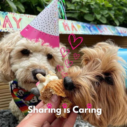 Made with a choice of vanilla or carob sponge, topped with a swish of our famous vanilla, carob or playful pink yoghurt frosting and decorated with a crunchy bone and edible disc...pawsome!