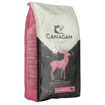 Our Canagan Small Breed Country Game has a smaller kibble which is perfect for the smaller dog. Canagan Country Game is the defining statement in grain free nutrition. With even higher levels of super digestible protein delivered by an unprecedented selection of delicious natural ingredients. Our freshly prepared duck and venison are produced to an equivalent human food standard and are perfectly complimented with vegetables and botanicals. Let your dog show you this is the ultimate taste experience.