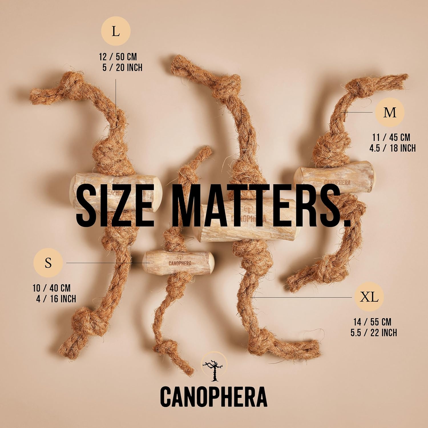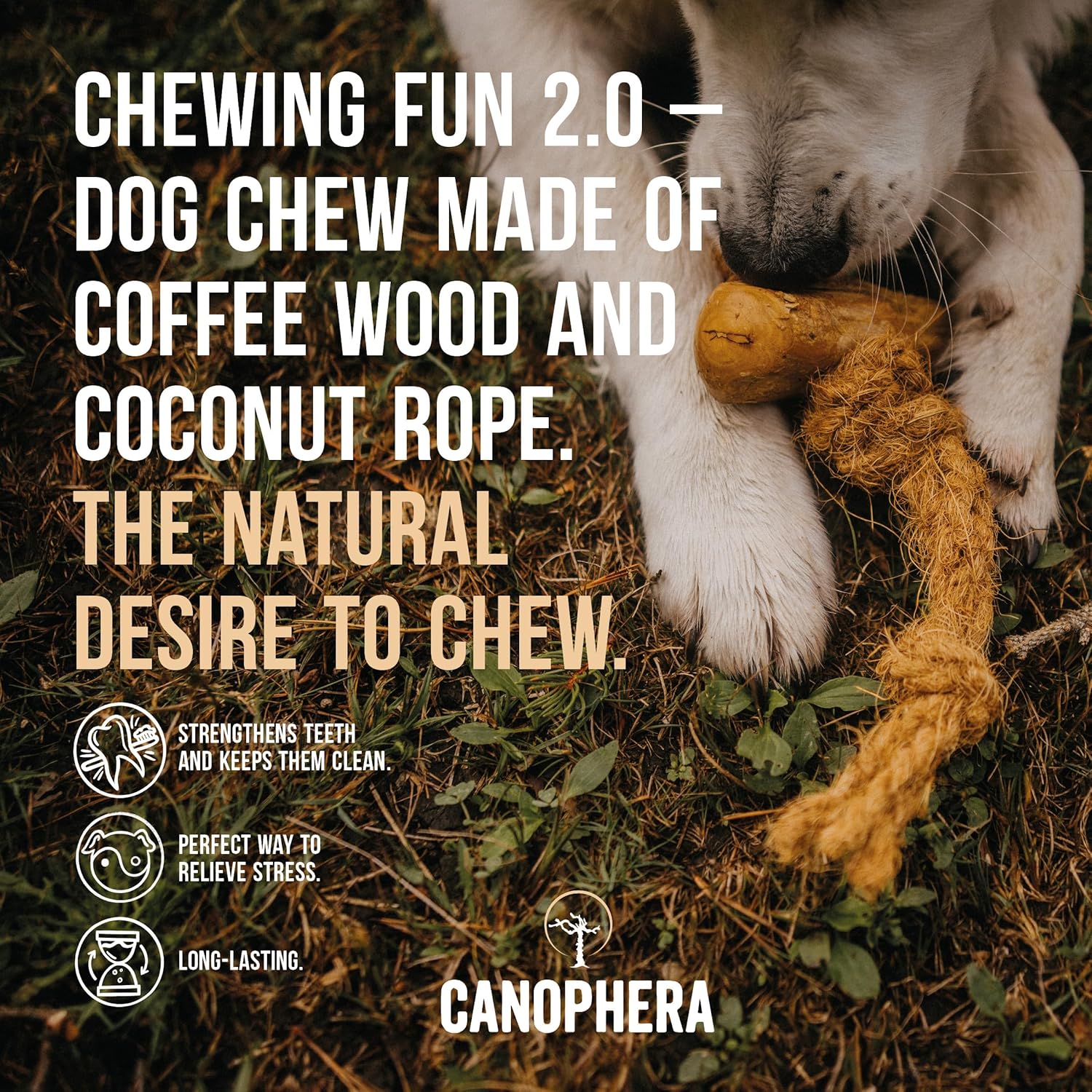 - Strengthens and cleans teeth: Due to its special fibre structure, coffee wood and coconut rope can prevent plaque and help to maintain dental health. Like this, our chews combine dog stimulation toys and natural toothbrush in one.