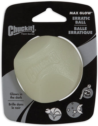 Our Chuckit! Max Glow Erratic Ball is part of an extensive, innovative range of toys for dogs of all sizes, ages and abilities. It is a durable, geometrically shaped rubber ball that bounces erratically meaning play time is interesting and challenging no matter whether its day or night.