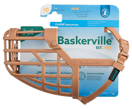 The NEW Baskerville Classic Muzzle has been created using an improved Thermoplastic rubber (TPR) material, which is lighter than the classic plastic design but 4x stronger with increased durability. This unique material allows the Muzzle to be reshaped to a custom fit in hot water.
