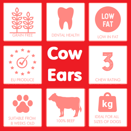- Dental health – Dogs adore gnawing on our Cows Ears which helps maintain good oral health. Dental plaque gets loosened and removed when dogs chew on our Cows Ears