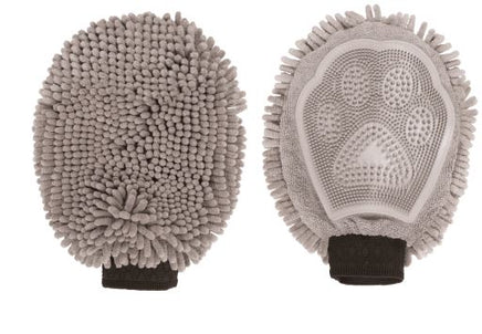 Our super absorbent microfibers on the reverse side absorb 10x their weight to quickly dry your pet. The soft and plush fibers gently massage while cleaning for a relaxing treat your pet will love.