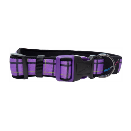 Dog & Co Country Check Collar Purple. This adjustable collar comes with a modern check design. Padded for extra comfort this hard wearing collar is suitable for all breeds of dog. Matching lead and harness available.