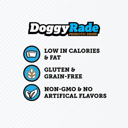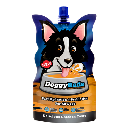 DoggyRade is a functional health drink for dogs containing prebiotics, electrolytes and beneficial amino acids.