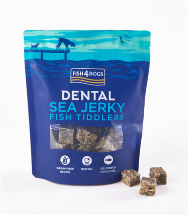 Made from 100% fish skins these natural low calorie treats (average 3 per treat) have a rough texture which not only help remove tartar from your dogÆs teeth but have a taste dogs adore. Sea Jerky Tiddlers are around 20mm cube.