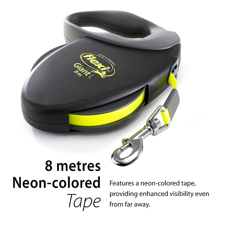 Tough lead for tough dogs: Flexi has a soft spot for big dogs - the full 16 m diameter allows your best friend to explore the delights of the countryside with all the freedom of movement he wants. Flexi GIANT is easy to use and the soft grip handle makes even the longest of walks seem short.