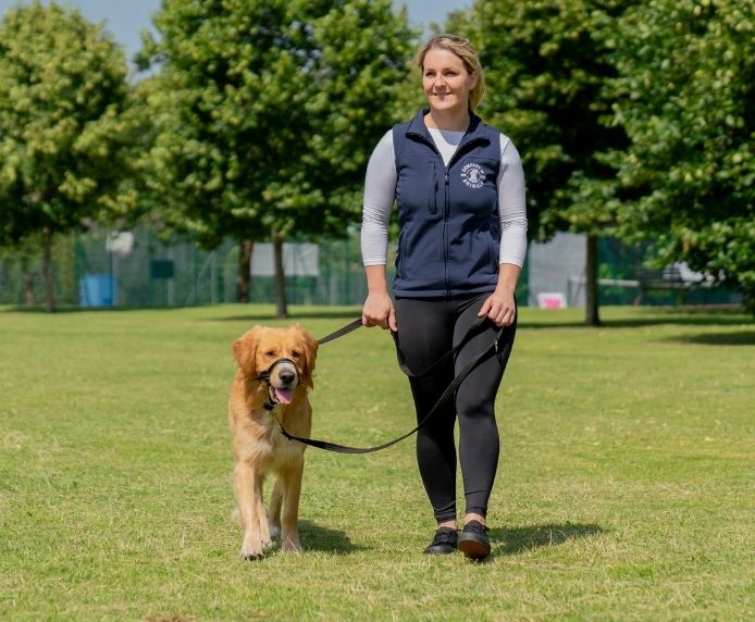 Make sure your dog is wearing a collar, and connect the headcollar’s safety link to it for added security, even if the lead isn’t connected to the collar.