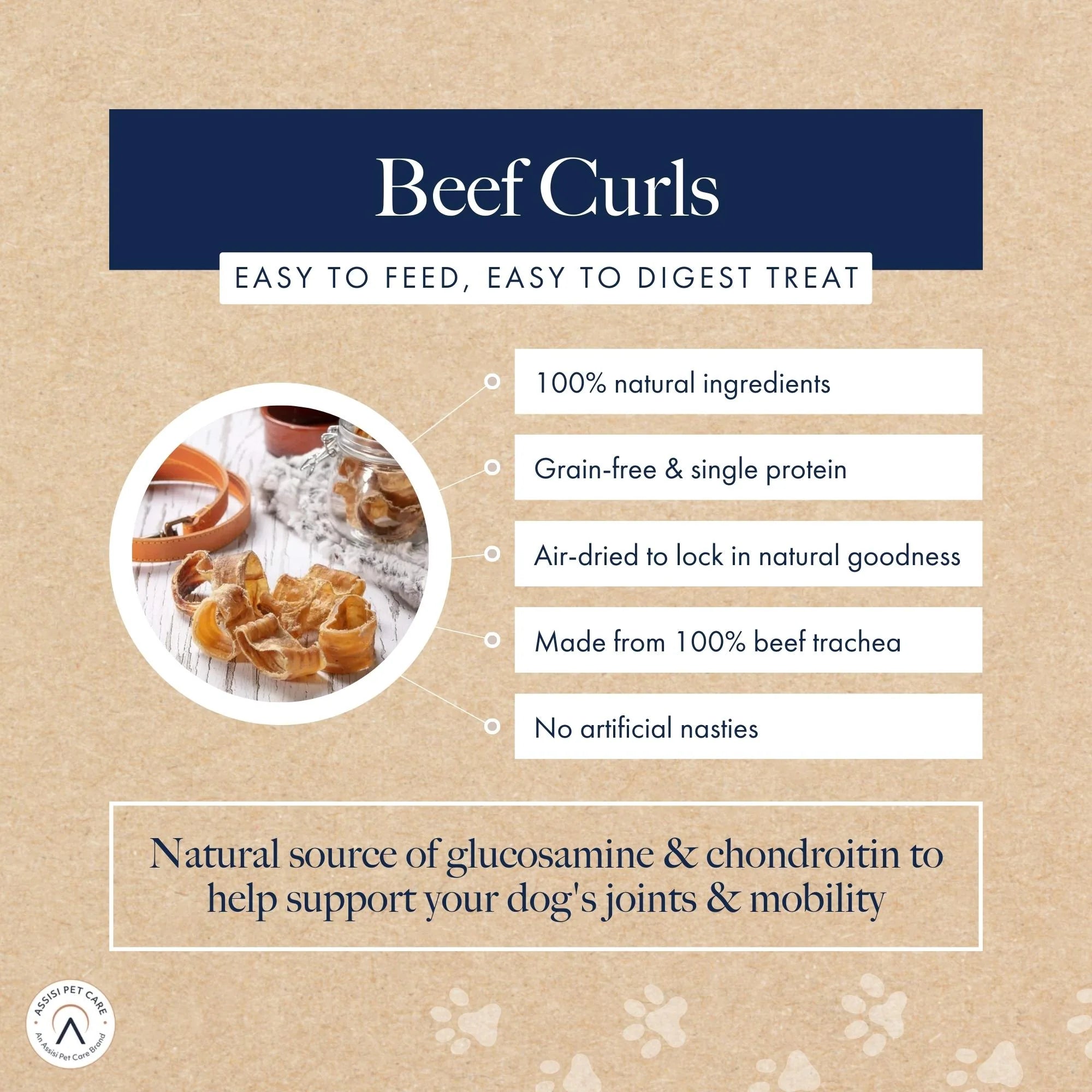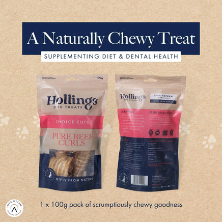 - EASY TO DIGEST WHILST SUPPORTING JOINT HEALTH - Hollings Beef Curls are made from 100% beef trachea and air dried to seal in all the natural goodness, our Beef Curls are an easy to feed, easy to digest treat. A natural source of Glucosamine & Chondroitin known for supporting joint health and mobility.