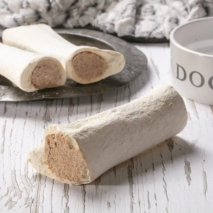 Our filled bones are a long lasting and tasty treat that can help mentally stimulate your dog to reduce boredom and improve calmness.