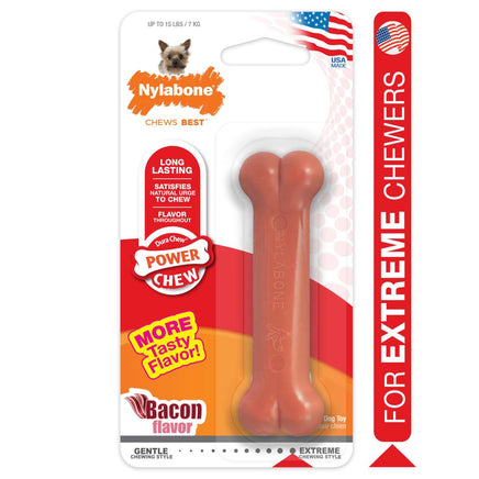 Made with tough nylon, this Power Chew Chew Toy was designed to challenge even the most aggressive chewers. This long-lasting, durable dog chew toy is the perfect occupying chew to help fight boredom, ease stress and anxiety, aid in weight management, and encourage healthy chewing habits. This dog bone toy is made with irresistible flavor throughout to keep your best friend's taste buds satisfied! Plus, it helps promote dental health by reducing plaque and tartar as dogs chew. This Power Chew is available in a variety of sizes so you can find the perfect one for your best friend. Go ahead and give your dog this classic Nylabone chew toy! Made of tough, durable nylon for aggressive chewers.