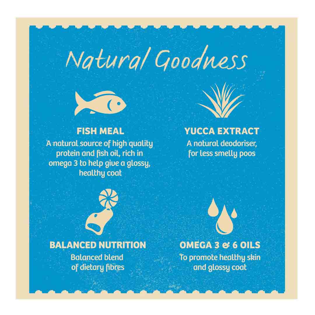 Crafted with nature's nourishing ingredients and combined with sustainably sourced fish to create highly digestible, tasty dry dog food. Our recipe is also made without grains for dogs with grain sensitivity. Best of all, you can be sure they're enjoying a balanced diet. One that not only tastes good but does them a world of good too.