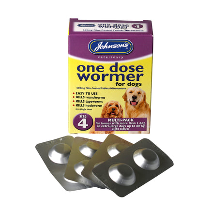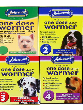 Johnson's One Dose Easy Worming Tablets for Extra Large and multiple dog homes are a one dose solution for the treatment and prevention of worms in your adult dog. Designed for homes with more than one dog and suitable for dogs from up to 80kg in weight, Johnson's one Dose Easy Worming Tablets are recommended to be repeated every 3-4 months for complete annual protection.