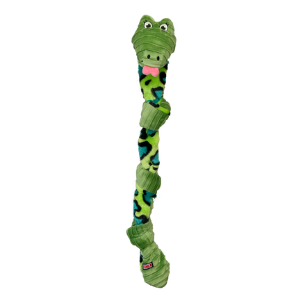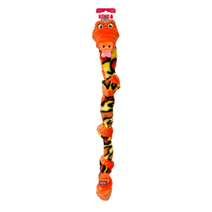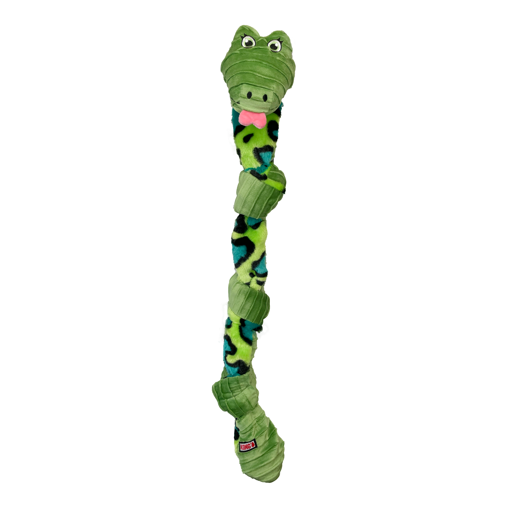 KONG Knots Snake is soft on the outside and tough on the inside—thanks to an internal knotted rope that satisfies dogs’ natural instincts. This long, floppy friend is ideal for shaking, tugging and tossing with squeakers inside that prolong play. This silly serpent is skinny enough for all sizes of dogs to grab on to a long buddy ideal made for long-lasting solo and interactive play.