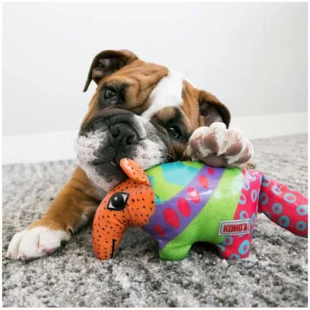 KONG Shieldz are coated and sealed in an ultra-durable coating that is built to last. The coated and sealed exterior protects the plush interior ensuring that dog’s get layers of engagement that fulfill their natural chewing instincts. A squeaker and rattle continue the fun keeping dogs engaged for long-lasting fun. These durable friends easily wipe clean making them ideal for both indoor and outdoor play.
