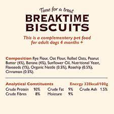 Rye Flour, Oat Flour, Rolled Oats, Peanut Butter (4%), Banana (4%), Sunflower Oil, Nutritional Yeast, Flaxseeds (1%), Organic Nettle (0.5%), Rosehip (0.5%), Cinnamon (0.5%).