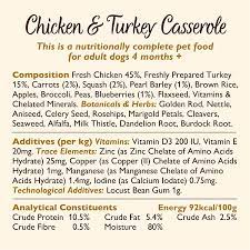 Fresh Chicken (45%); Freshly Prepared Turkey (15%); Carrots (2%)
