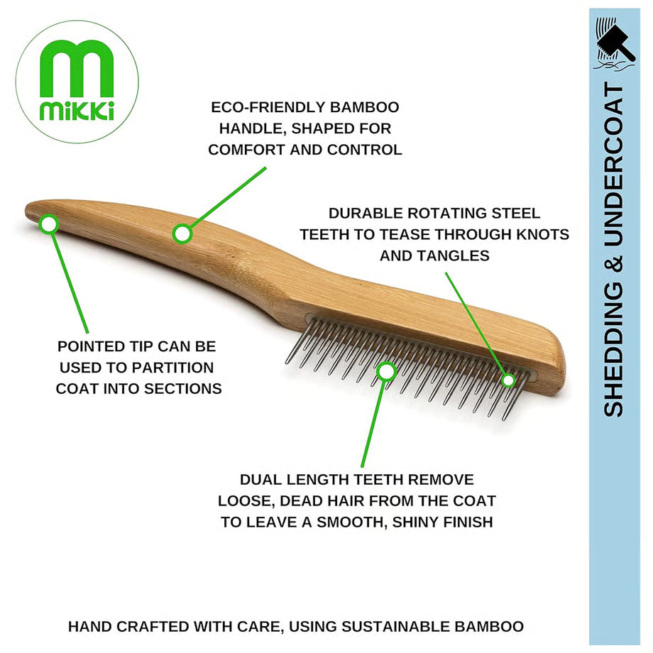 Whether you have a long-haired Persian or a short-haired Labrador, this versatile comb is a must-have for all pet owners. Spend less time cleaning up hair and more time cuddling your beloved companion. The Mikki Bamboo Comb makes grooming a breeze, leaving your pet's coat soft, shiny, and tangle-free.