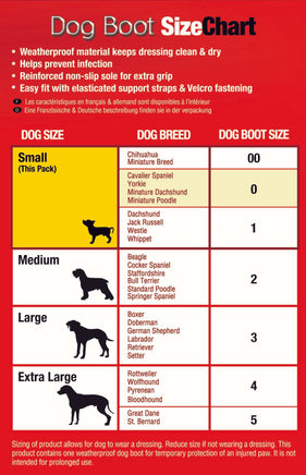 Our Mikki dog boot can be used for foot protection whilst out exercising or to cover a foot dressing or wound protection. It has a bonded vinyl upper with a non slip PVC sole making it ideal for post-operation wear. Secure snuggly with the Velcro fastening, making sure it is not too tight.