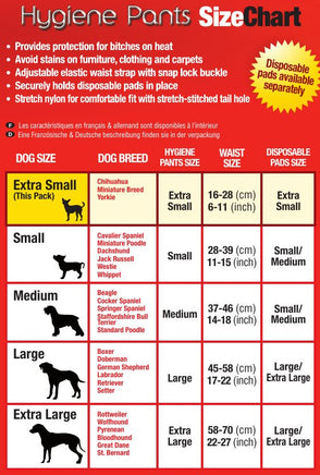 Our hygiene pants are designed to provide protection to female dogs on heat while avoiding messy clean-ups for you.