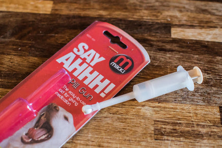 Hold your pets mouth open firmly and deposit the pill at the back of the throat by using the plunger. It may be necessary to hold your pet's jaws closed and rub the throat area to encourage swallowing.