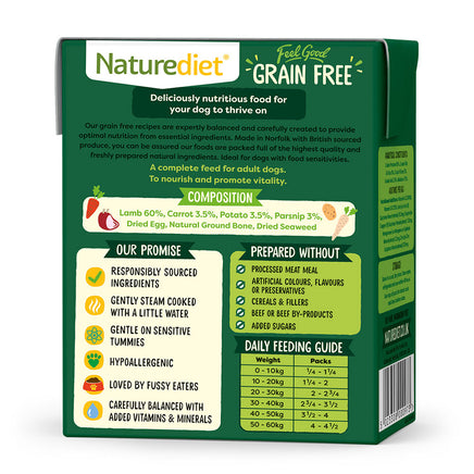 A grain free recipe made with freshly prepared lamb, carrots, potato and parsnip.